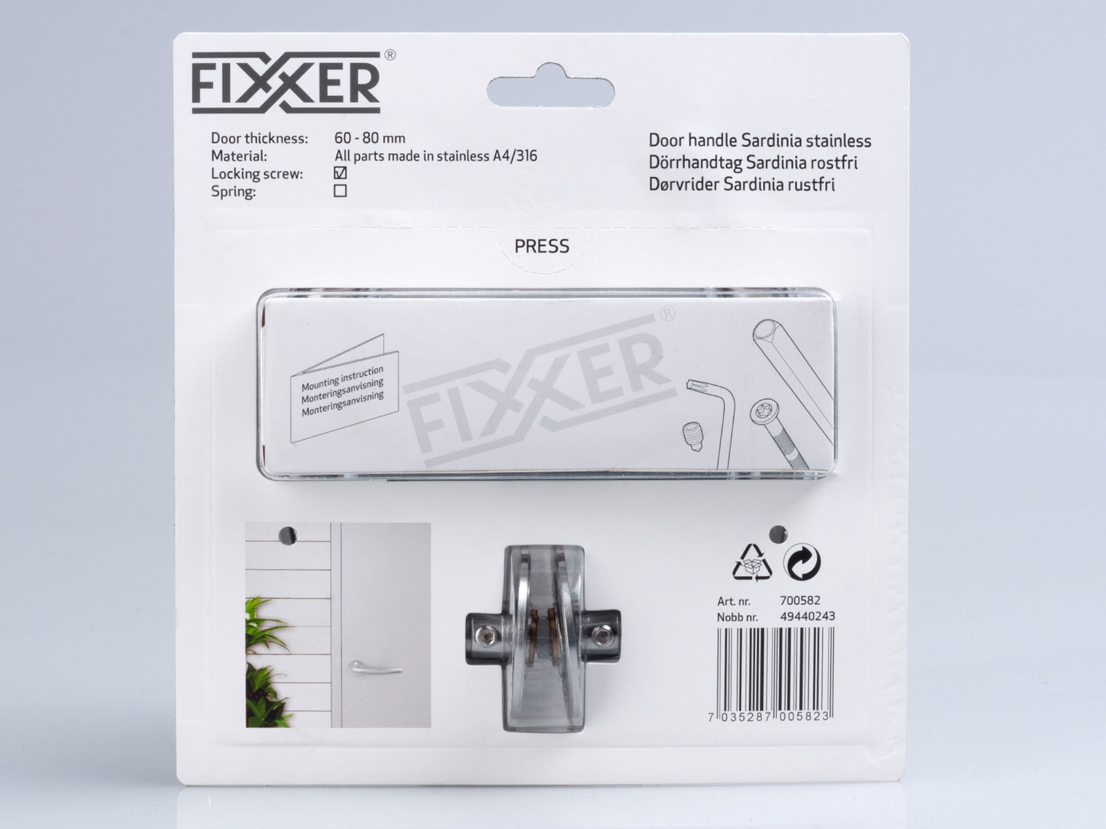 Dørvrider Sardinia rustfri A4