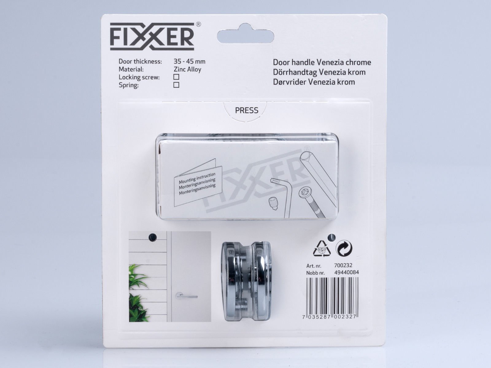 Dørvrider av zink/alloy for innerdører. Krom utførelse. Passer til dørtykkelse 35-45 mm. Leveres komplett med skilt type R1 med skjult skruing på en side, samt skruer og tilbehør. Vriderskiltene i denne EXCLUSIVE-serien har den unike egenskapen at de sitter ekstra godt på døren.