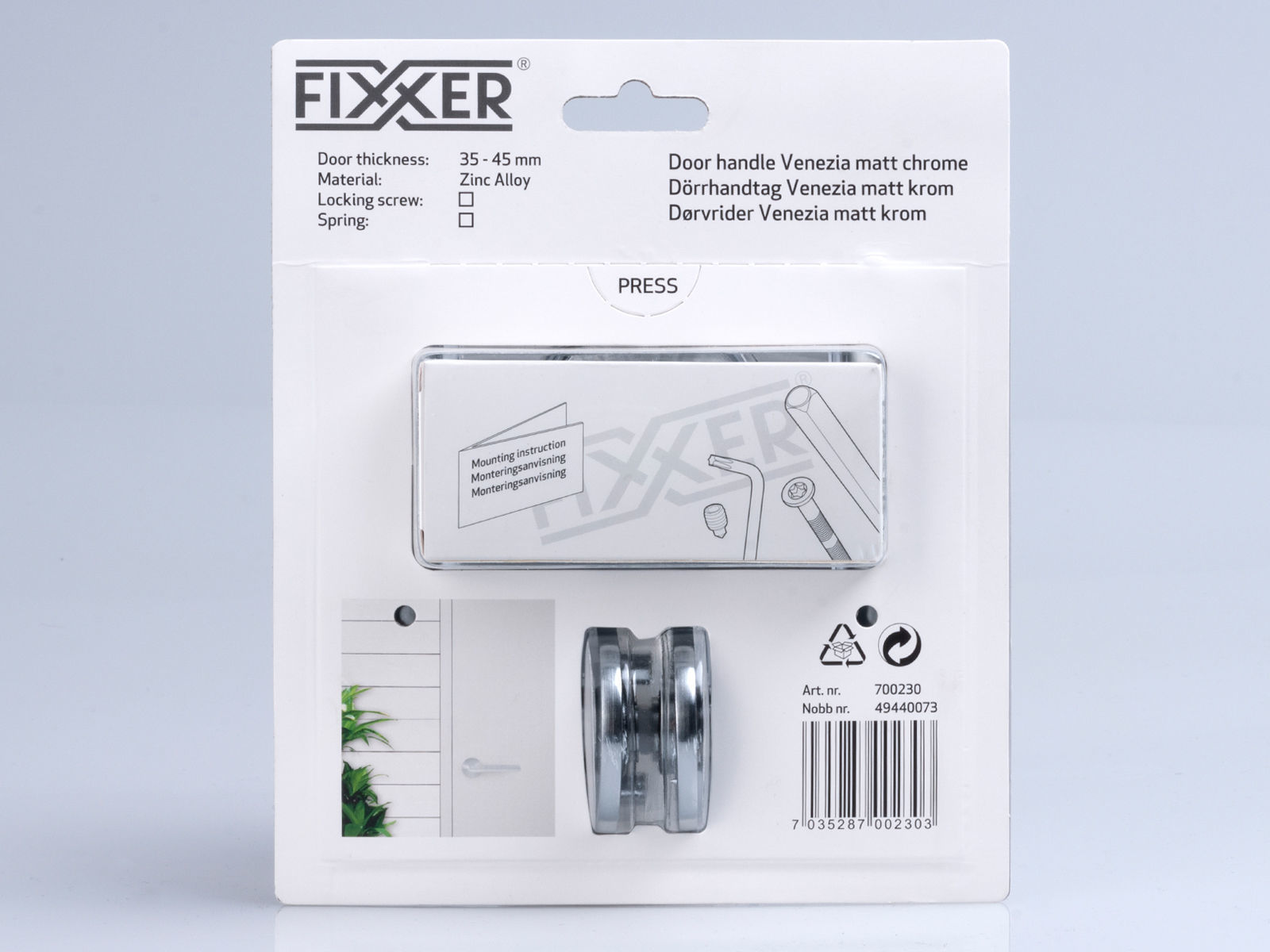 Dørvrider av zink/alloy for innerdører. Krom matt utførelse. Passer til dørtykkelse 35-45 mm. Leveres komplett med skilt type R1 med skjult skruing på en side, samt skruer og tilbehør. Vriderskiltene i denne EXCLUSIVE-serien har den unike egenskapen at de sitter ekstra godt på døren.
