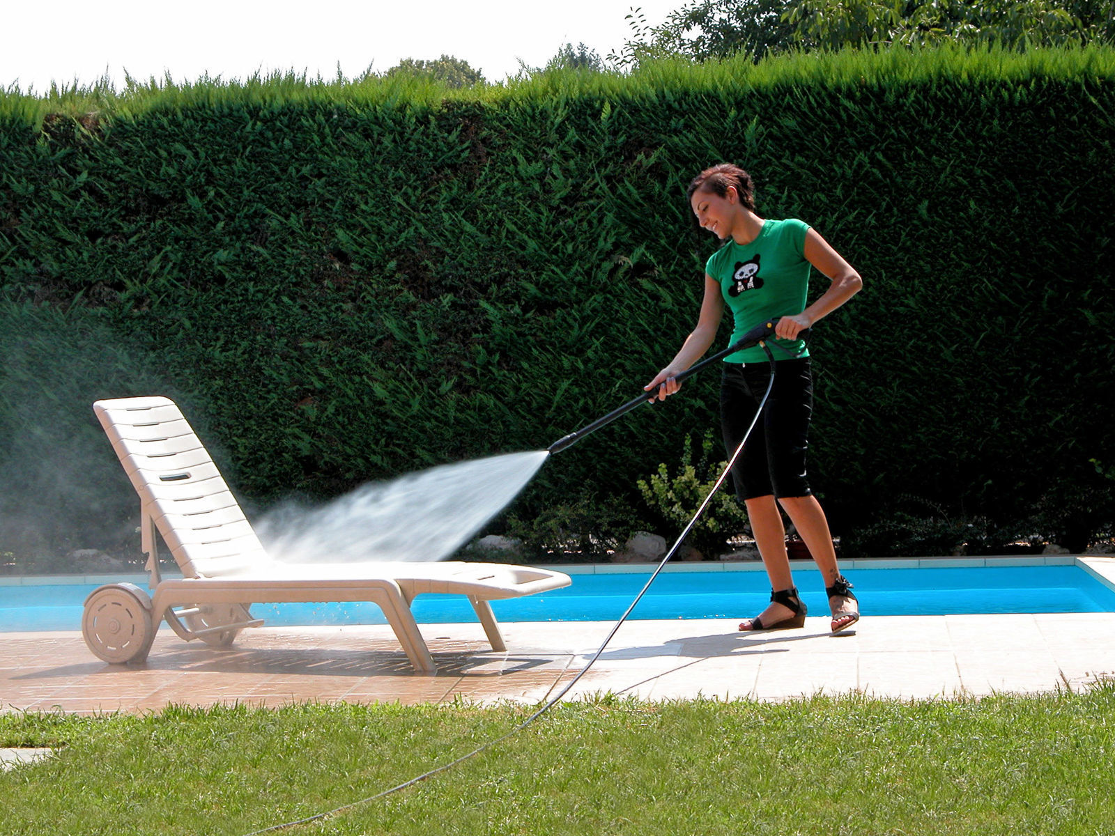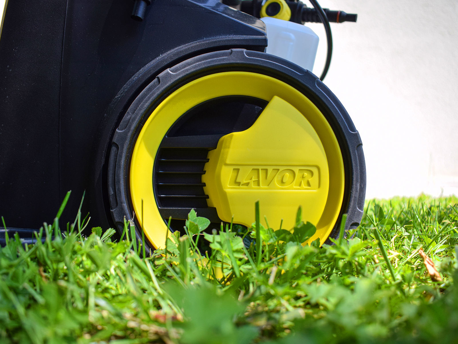 Nedfellbart teleskophåndtak og praktisk bærehåndtak i front gjør det enkelt å transportere høytrykksspyleren. Store hjul med gummibelegg sørger for at spyleren står stødig på alle underlag og gjør samtidig at den er enkel å flytte på. Pumpen i denne modellen har tre stempler, pumpehode av aluminium og har innebygd omløpsventil. Den har roterende av/på-bryter, samt automatisk start-/stopp-system som styres fra pistolgrepet. Høytrykkslangen kobles raskt og enkelt til pistol og høytrykksspyler med hurtigkoblinger. Lansen er utstyrt med hurtigkobling, noe som gjør bytte mellom det ulike tilbehørene raskt og enkelt. Slangespole for oppbevaring av høytrykksslangen når den ikke er i bruk. Utstyr og tilbehør som pistolgrep, lanse, dyser og såpebeholder har egne oppbevaringsplasser på vaskeren. Den er også utstyrt med en bred krok på baksiden hvor du kan henge ledningen ved lagring. høytrykksspyleren leveres med høytrykksslange på 6 meter, pistolgrep med låseknapp, terrassevasker med forlenger, justerbar såpebeholder som festes til lansen, høytrykksdyse med Variojet, dyse med justerbar viftestråle, turbodyse og vannfilter for vanninntak.