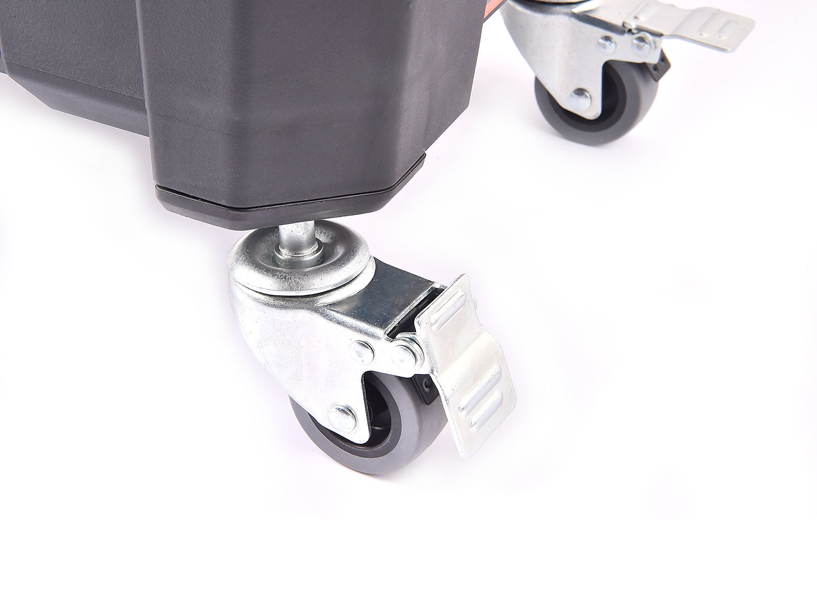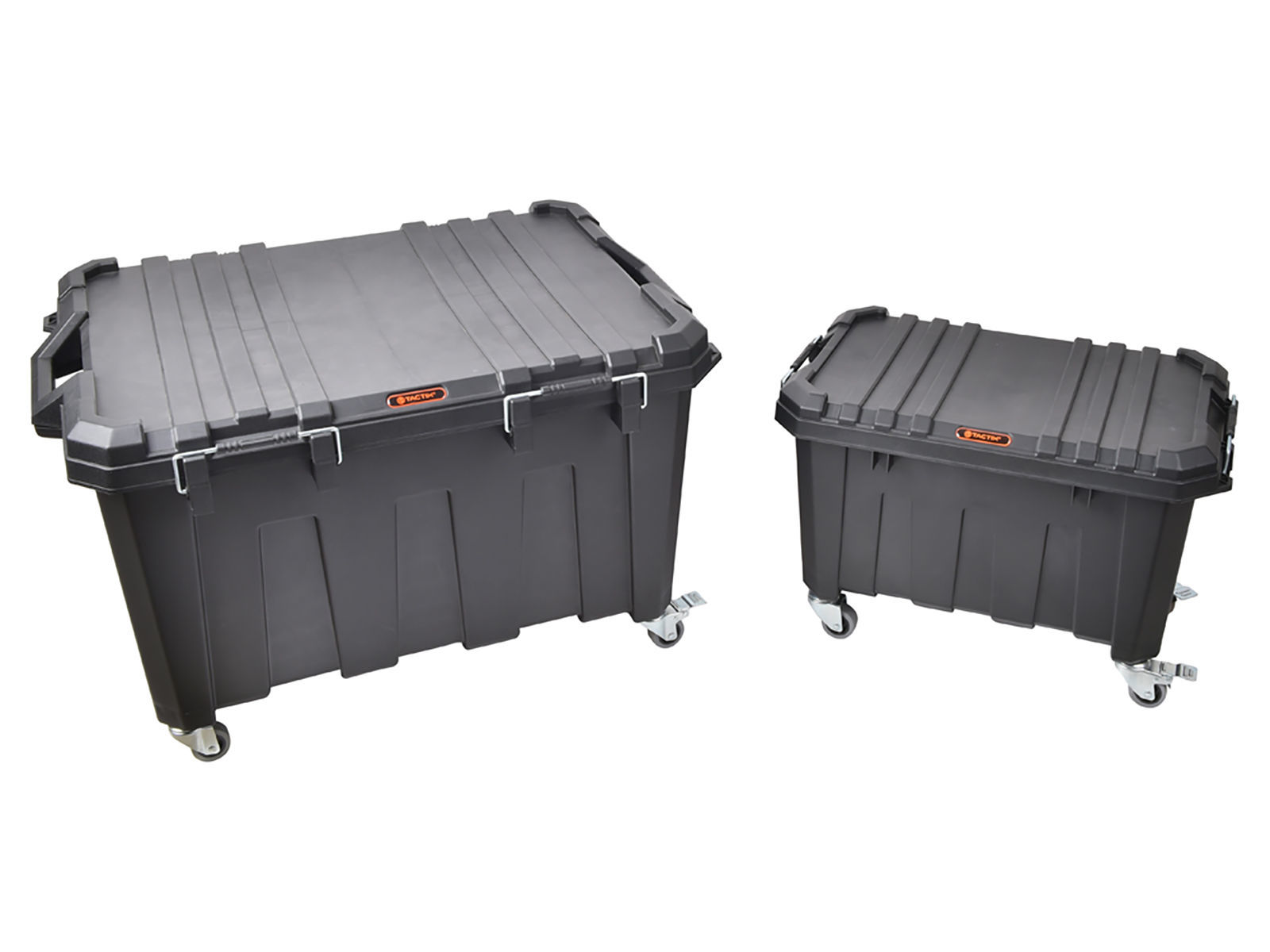 Hjulsett med 4 hjul gjør det enkelt å flytte på Tactix containerkasser. To av hjulene er utstyrt med bremser. Lastekapasitet pr. hjul på hele 40 kg. Enkel montering.