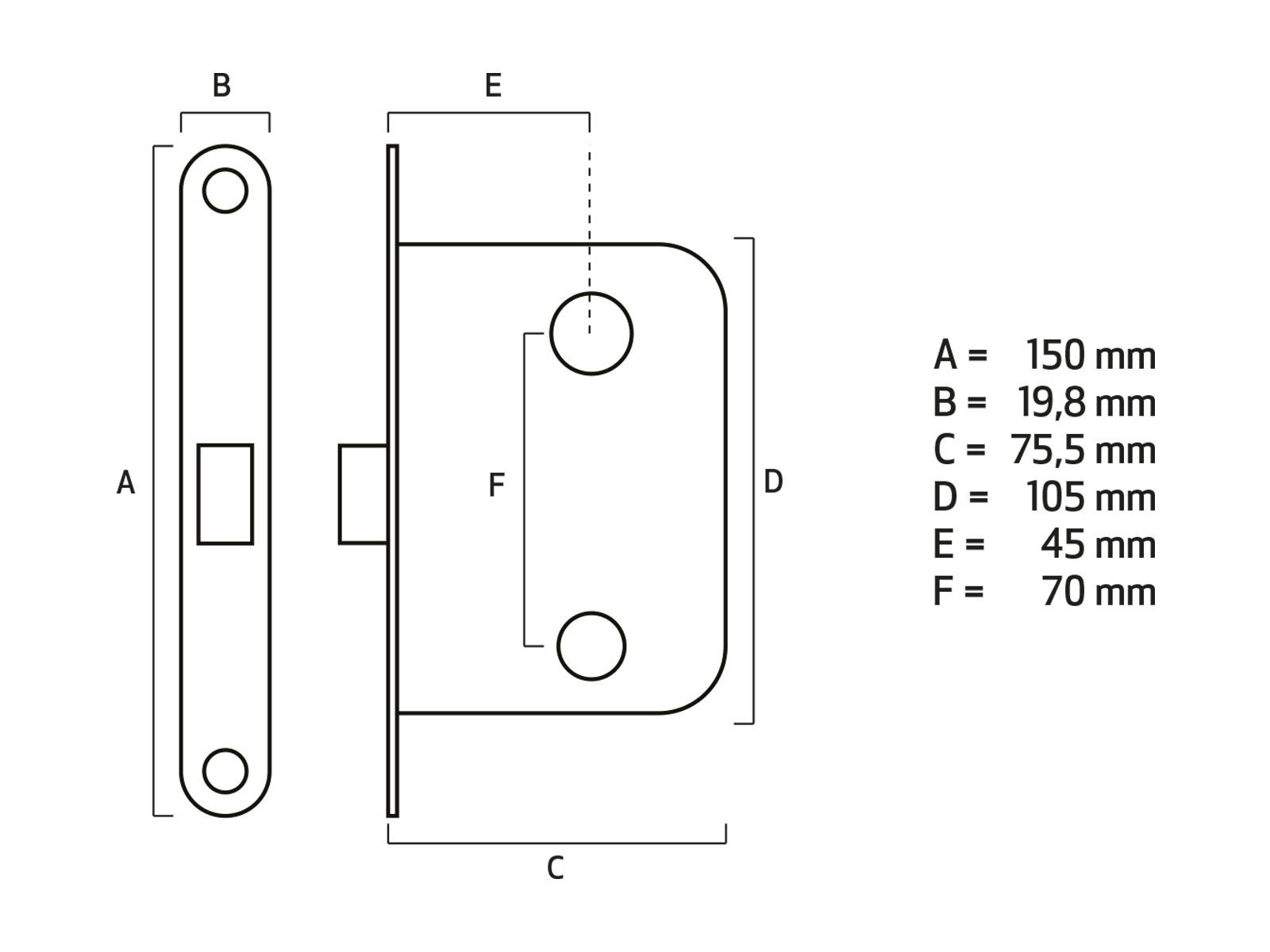 Låskasse for innvendig lettdører som betjener vriderreilen med sylinder eller vriderknapp. Elforsinket utførelse. Slagretning endres ved å trekke ut vriderfallen og vri den 180 grader. Leveres med sluttstykke. Sylinder 55537 benyttes på denne låskassen.