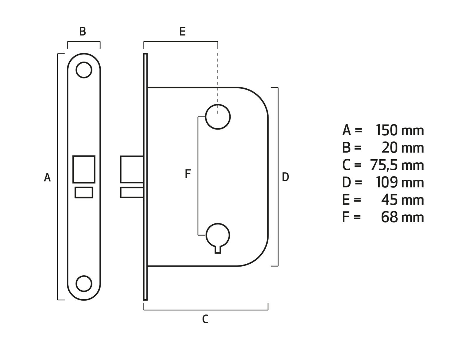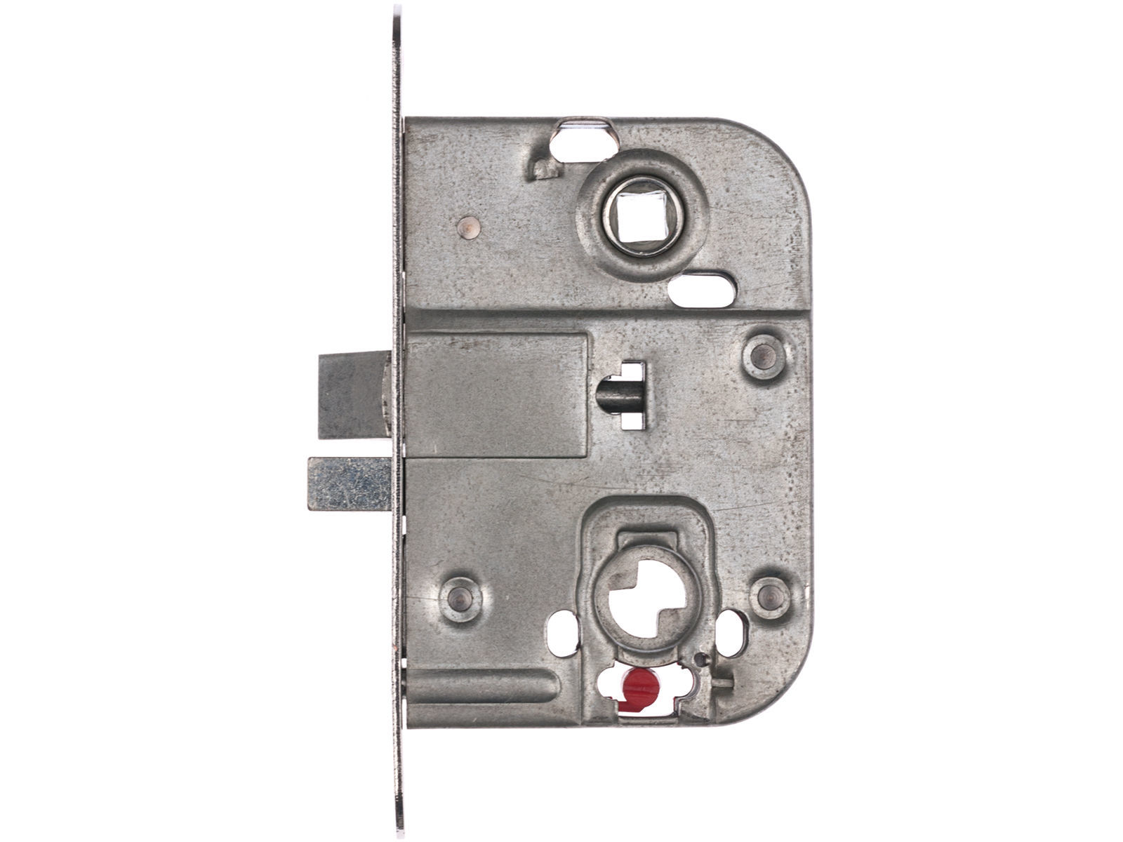 Låskasse for innvendig lettdører som betjener låsreilen med sylinder eller vriderknapp. Elforsinket utførelse. Slagretning endres ved å trekke ut vriderfallen og vri den 180 grader. Leveres med sluttstykke. Sylinder 55520, 55537 benyttes på denne låskassen.