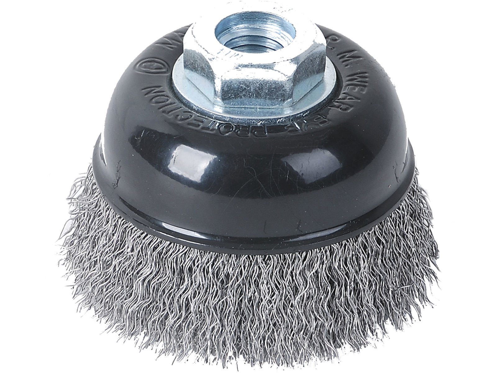 Stålbørste med 0,3mm tykk stål tråd og 6mm tapp. For bruk på vinkelsliper.