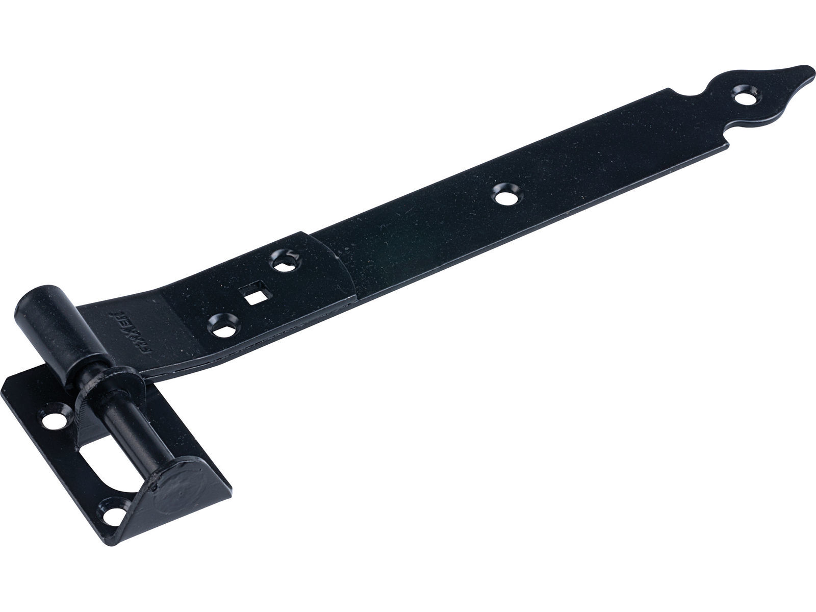 Stabelhengsel i sortlakkert stål for lette dører og porter. Monteringsskruer medfølger.