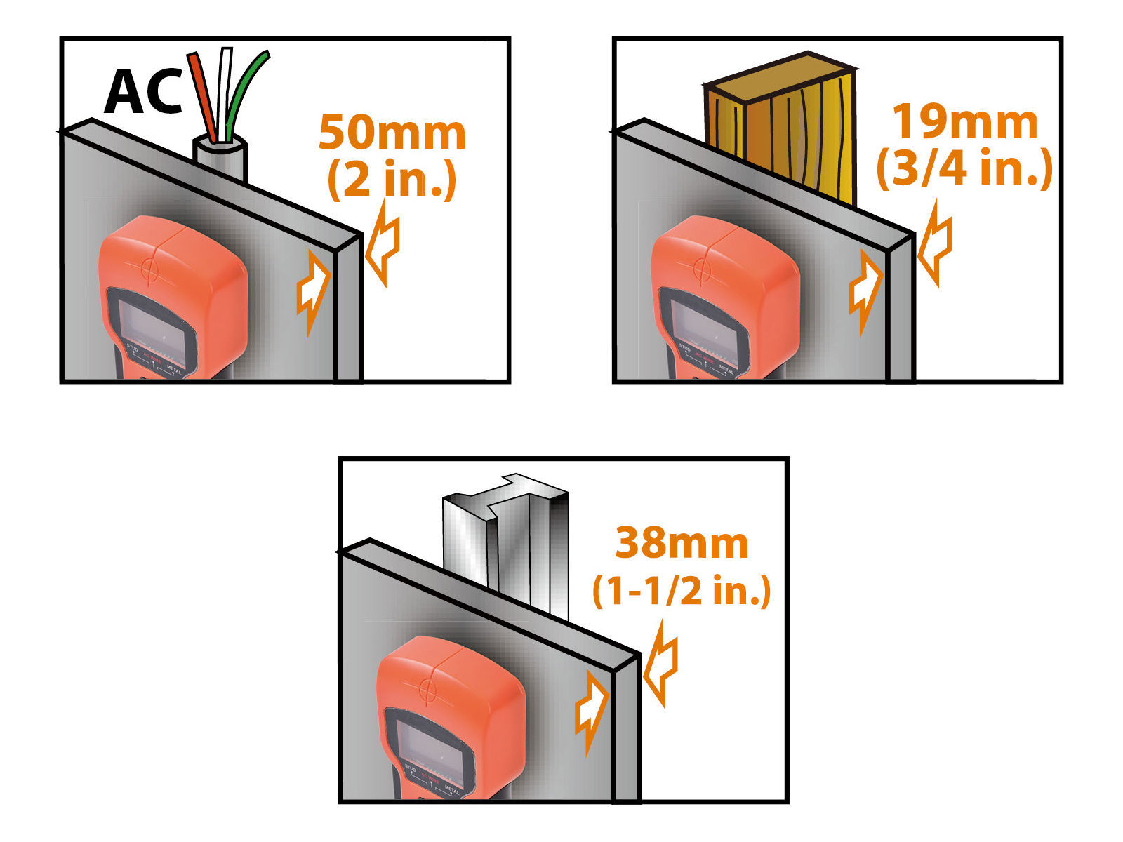 Den 3-i-1 intelligente stendersøkeren fra Tactix kan oppdage tre-/metallstendere og strømledninger i vegger, tak og gulv. Det tydelige LCD-displayet og lydindikasjonen gir informasjon om hvor stendere/strømledninger er plassert. Drives med et 9 V-batteri (ikke inkl.) Måledybde tre (19mm), metall (38mm) og strømledninger (50mm).