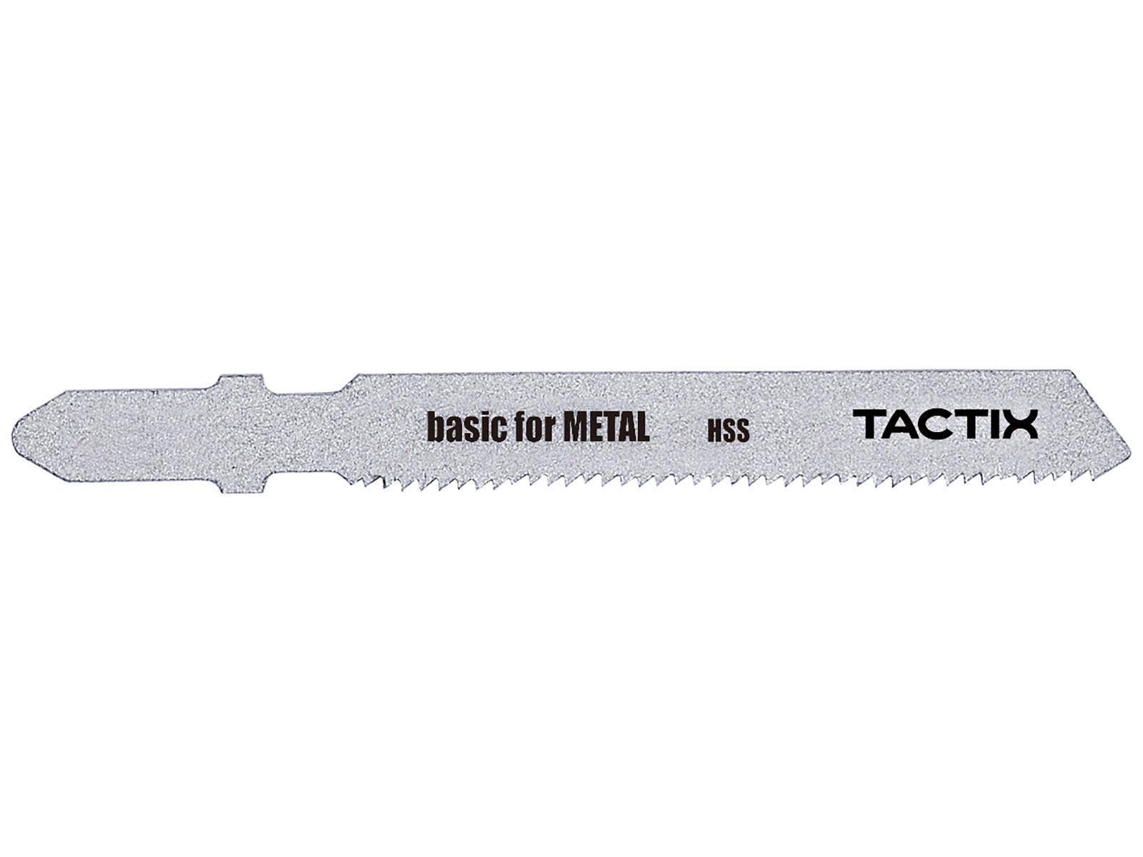 Basic for Metal stikksagblad lager rette kutt i metall. Det har valsede bølgetenner som er perfekte for kutt uten spesielle krav. Bladmateriale av fullherdet høyhastighetsstål er egnet for kutting av standard harde, ikke-perforerte metallplater. Bladets svært fine progressive tannavstand (1,2 mm) kutter svært tynne massive metallplater med en tykkelse på 1-3 mm. T-feste.