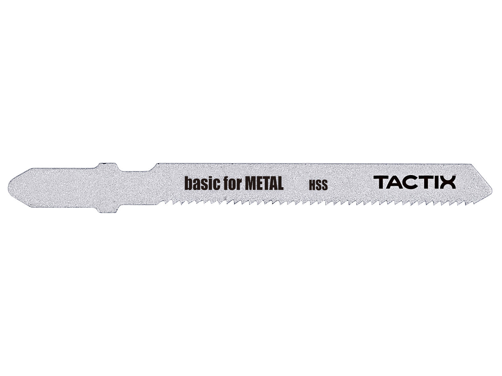 Basic for Metal stikksagblad lager avrundede kutt i metall. Det har valsede bølgetenner som er perfekte for kutt uten spesielle krav. I tillegg er det smale bladet optimalisert for avrundede kutt. Bladmateriale av fullherdet høyhastighetsstål av høy kvalitet er egnet for standard harde, ikke-perforerte metallplater. Bladets svært fine progressive tannavstand (1,2 mm) gjør at bladet kutter i mange ulike tynne massive metallplater med en tykkelse på 1-3 mm. T-feste.