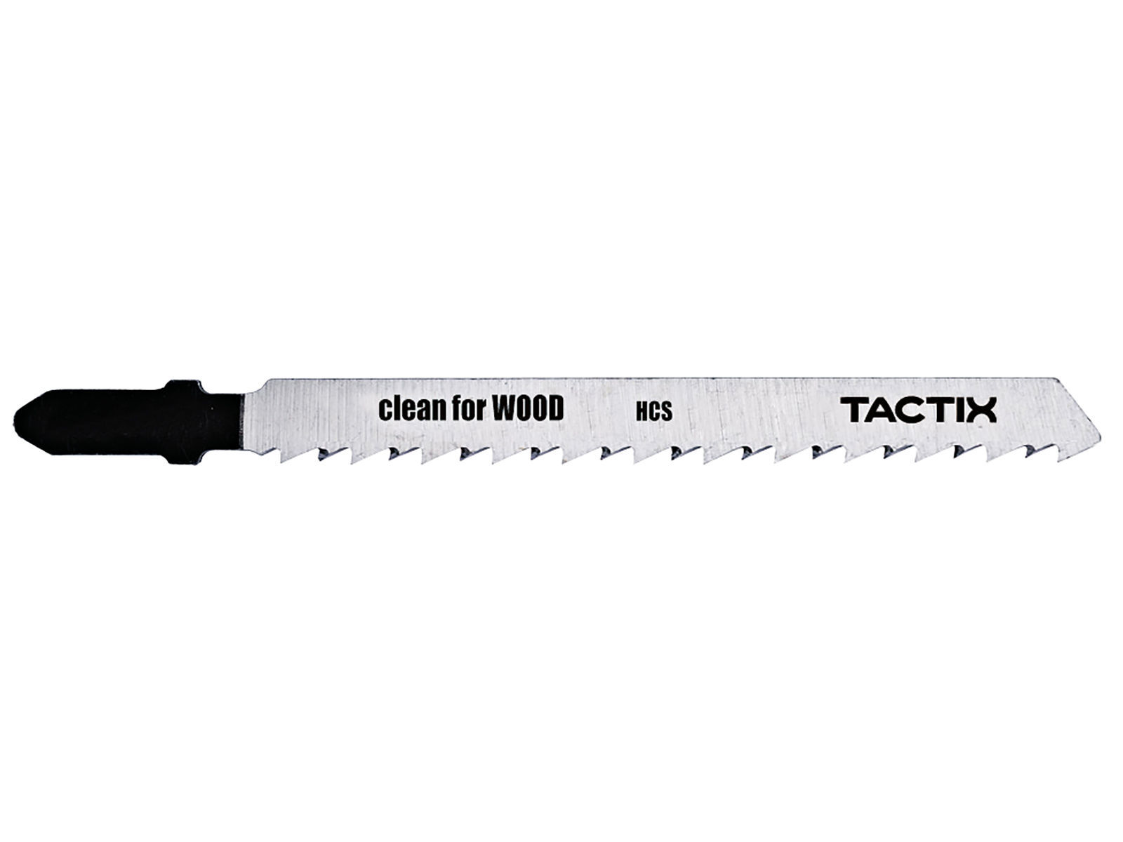 Clean for Wood stikksagblad lager rene rette kutt i tre. Blad av høykarbonstål som er egnet for å kutte mykt treverk og ikke-slipende trearbeidsmaterialer. Det har stor progressiv tannavstand (4,2 mm) for kutting i trematerialer med en tykkelse på 10-45 mm. T-feste.