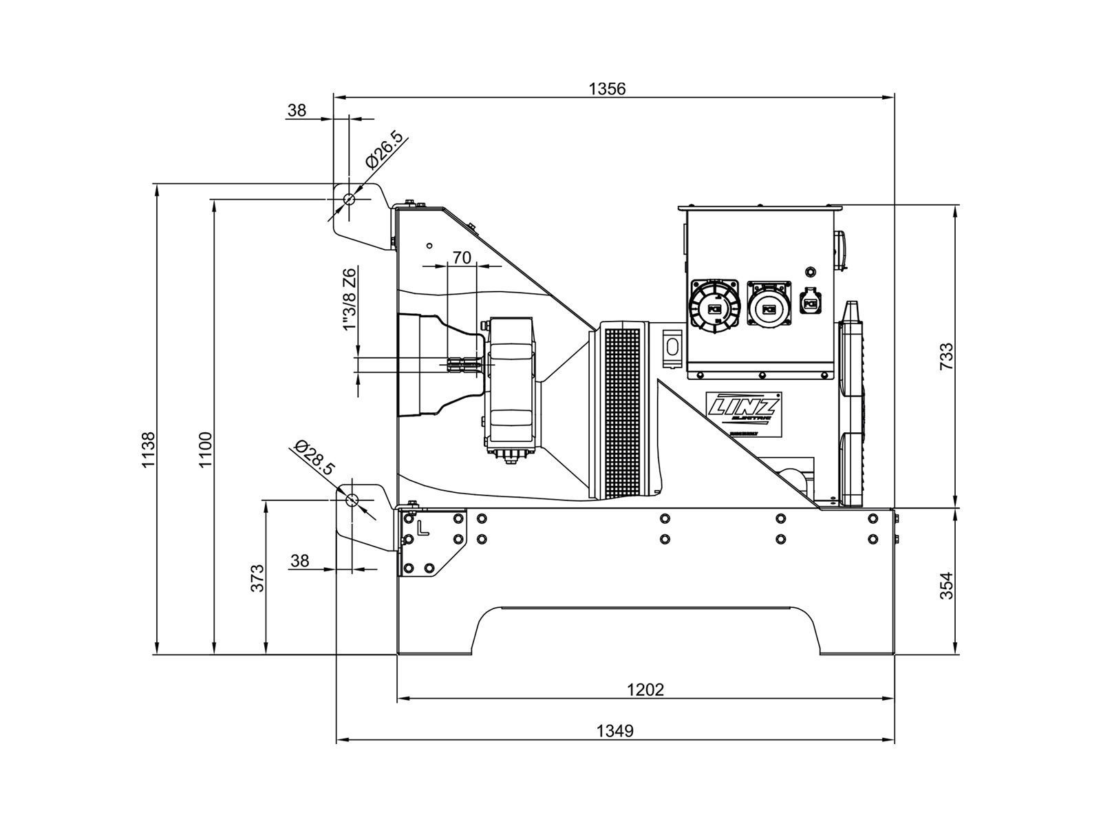 Traktordrevet strømaggregat, med maks ytelse på hele 75 kVA (65kW). Aggregatet kobles til traktorens kraftuttak med kraftoverføringsaksel (medfølger ikke), og etter å ha stilt inn rett turtall på kraftuttaket, vil aggregatets gearboks øke til rett hastighet, optimal drift har man når frekvensen er på 50 Hz. Aggregatet er utstyrt med 3-punkts feste, og kan lett transporteres. Anbefalt traktorstørrelse min. 99 HK.