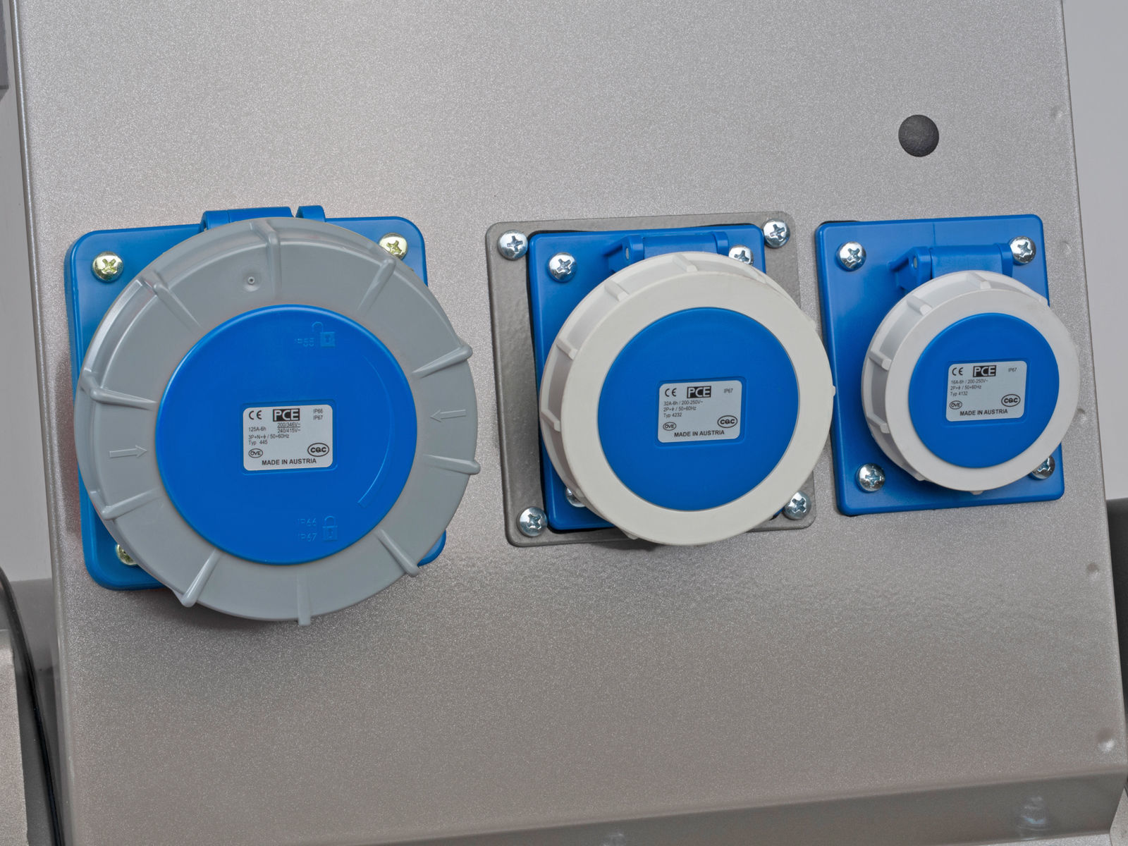 Aggregatet er utstyrt med AVR (automatisk spenningsregulering), voltmeter, amperemeter, frekvensmåler, timeteller, ett 3-fase strømuttak (230V, 125A), to 1-fase strømuttak (230V, 16A) og sikringer for alle kurser.