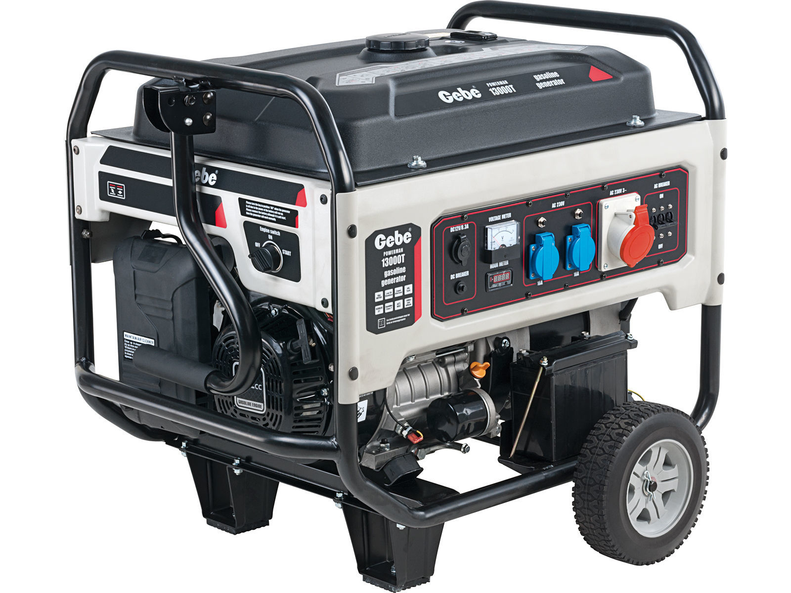 Profesjonelt bensindrevet strømaggregat med lettstartet og kraftig motor på hele 25 HK og generator med både 1-fase og 3-fase strømuttak (400V, 3-fase).  Maksimal effekt er 9,5 kW (3-fase) og 6,3 kW (1-fase).  Motor og generator er sammenbygd i kraftig, vibrasjonsdempende ramme som er utstyr med hjul og kraftig transport- og løftebøyle.  Videre er aggregatet utstyrt med AVR (automatisk spenningsregulering), voltmeter, frekvensmåler, automatsikringer, timeteller, indikasjonslamper, batterilader 12V, oljevakt og 48 liters tank som gir ca. 15 timers driftstid ved 50% belastning.  Aggregatet har to 16A, 1-fase strømuttak og ett 16A rundstift, 3-fase strømuttak.