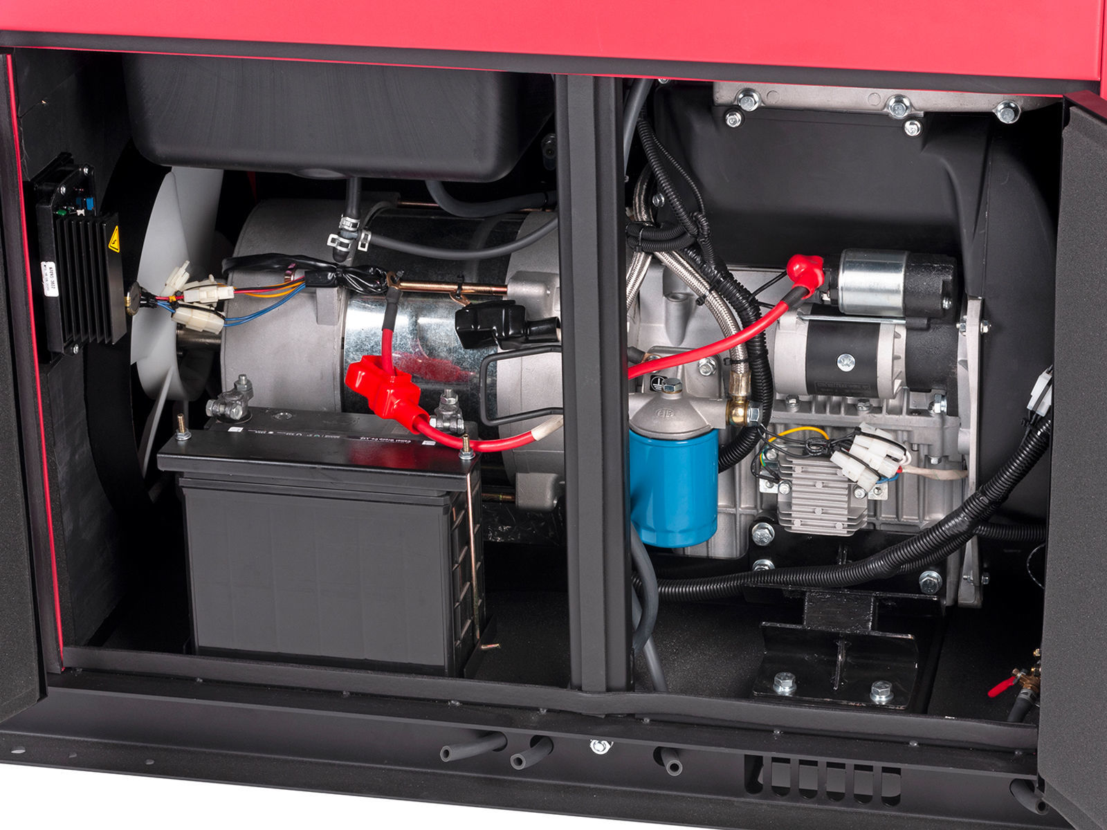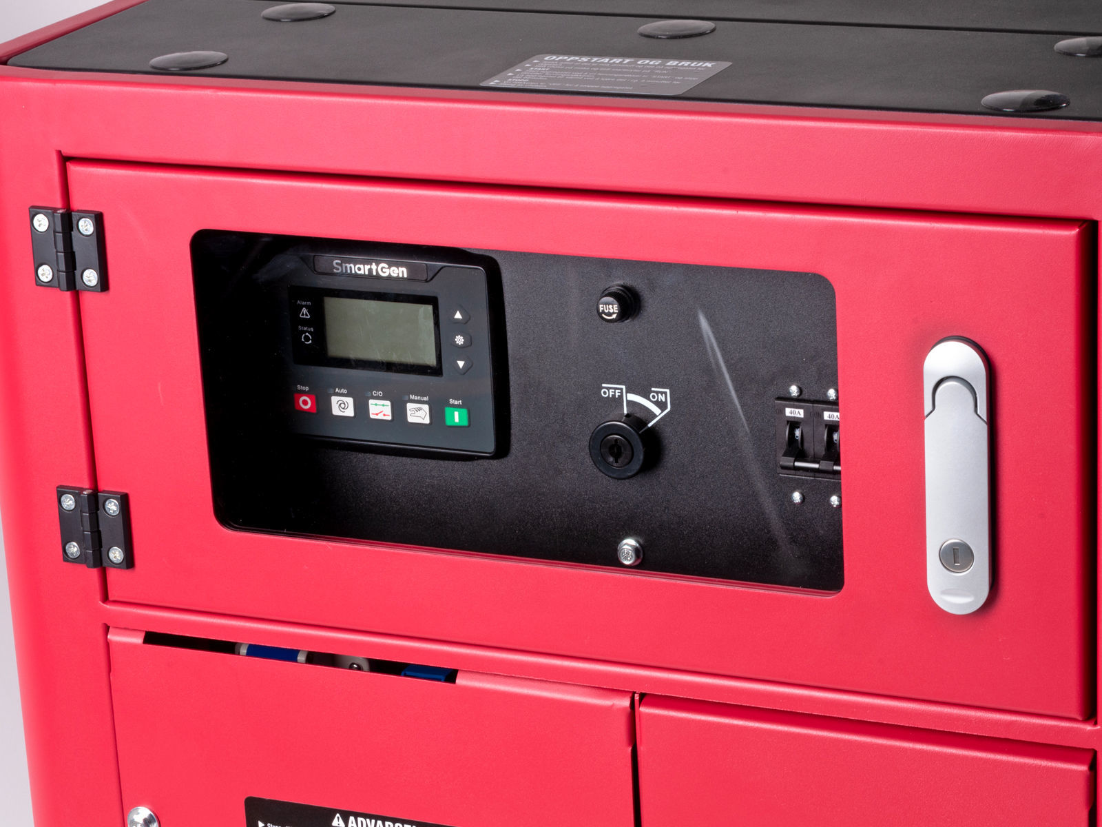 Støydempet dieseldrevet strømaggregat med både 1-fase (230V.) og 3-fase (230V.) strømuttak. Med en maksimal effekt på 12 kW (3-fase) gjør dette aggregatet meget anvendelig til mange arbeidsoppgaver. Aggregatet leveres med elektrisk start og batteri, samt trådløs fjernstart med rekkevidde opptil 50 meter. Aggregatet er utstyrt med forvarming (glødeplugg), som gjør start i lave temperaturer bedre og mer skånsomt for motoren. Videre er dette aggregatet utstyrt med AVR (automatisk spenningsregulering), oljevakt, digitalt betjeningspanel som gir brukeren god informasjon og forenkler bruk, stor tank som gir 6 timers driftstid, samt kraftig hjulgående rammekonstruksjon med løftekrok, som forenkler transport av aggregatet. Aggregatet er klartgjort for tilkobling til ATS (ATS-fordelingsskap selges som ekstra tilbehør), som gjør det mulig å benytte aggregatet som back-up strømforsyning hvis strømmen forsvinner.