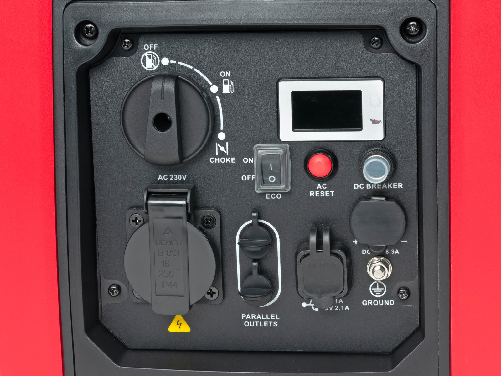 Aggregatet leveres videre med en rekke sikkerhetsfunksjoner; AVR (automatisk spenningsregulering), digitalt display som viser spenning og frekvens, oljevakt og en 4-takts bensinmotor med automatisk trinnløs hastighetskontroll tilpasset belastning, noe som gir ca 20% lavere drivstofforbruk.