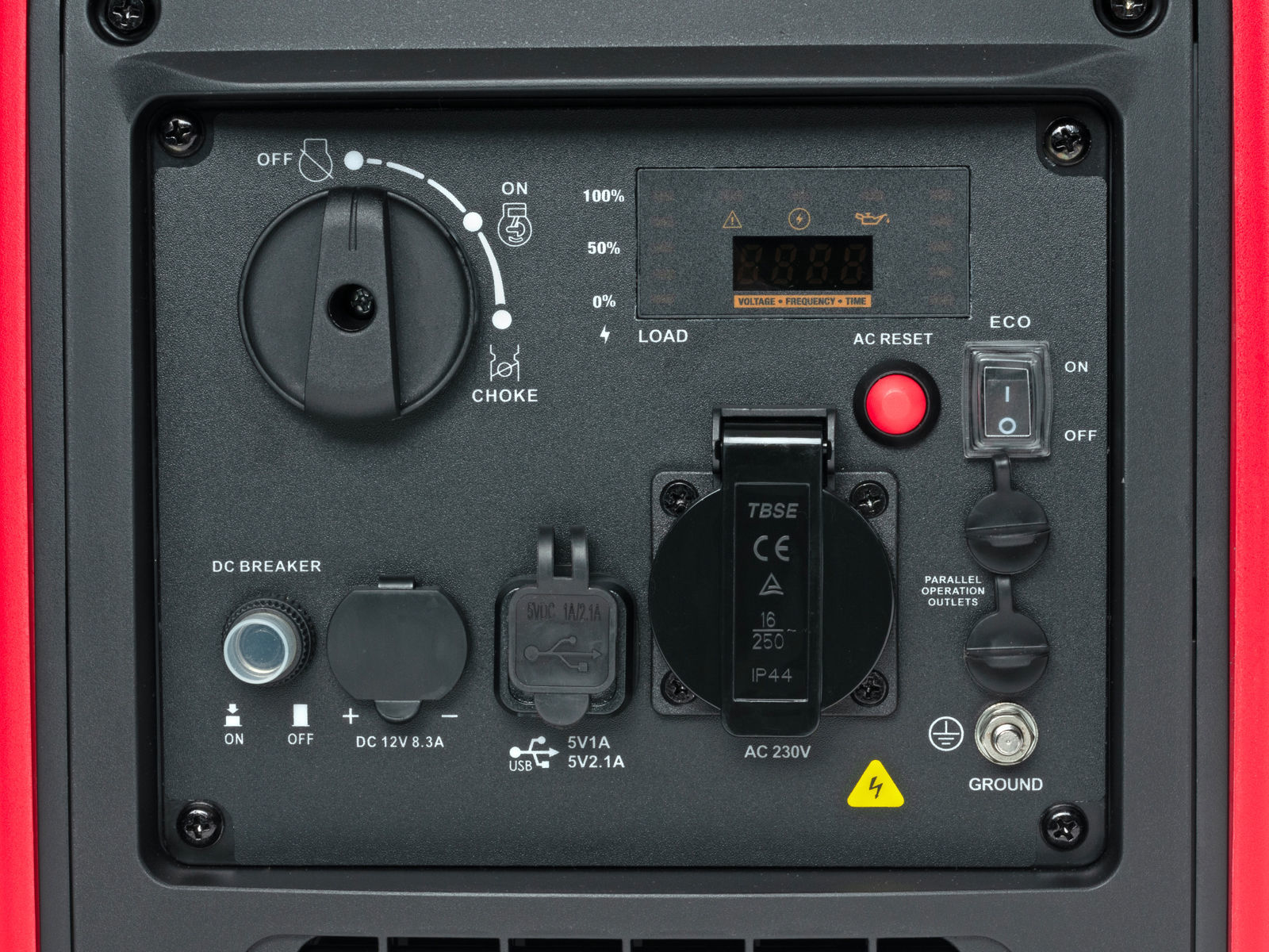 Aggregatet leveres videre med en rekke sikkerhetsfunksjoner; AVR (automatisk spenningsregulering), digitalt display som viser spenning og frekvens, oljevakt og en 4-takts bensinmotor med automatisk trinnløs hastighetskontroll tilpasset belastning, noe som gir ca 20% lavere drivstofforbruk.