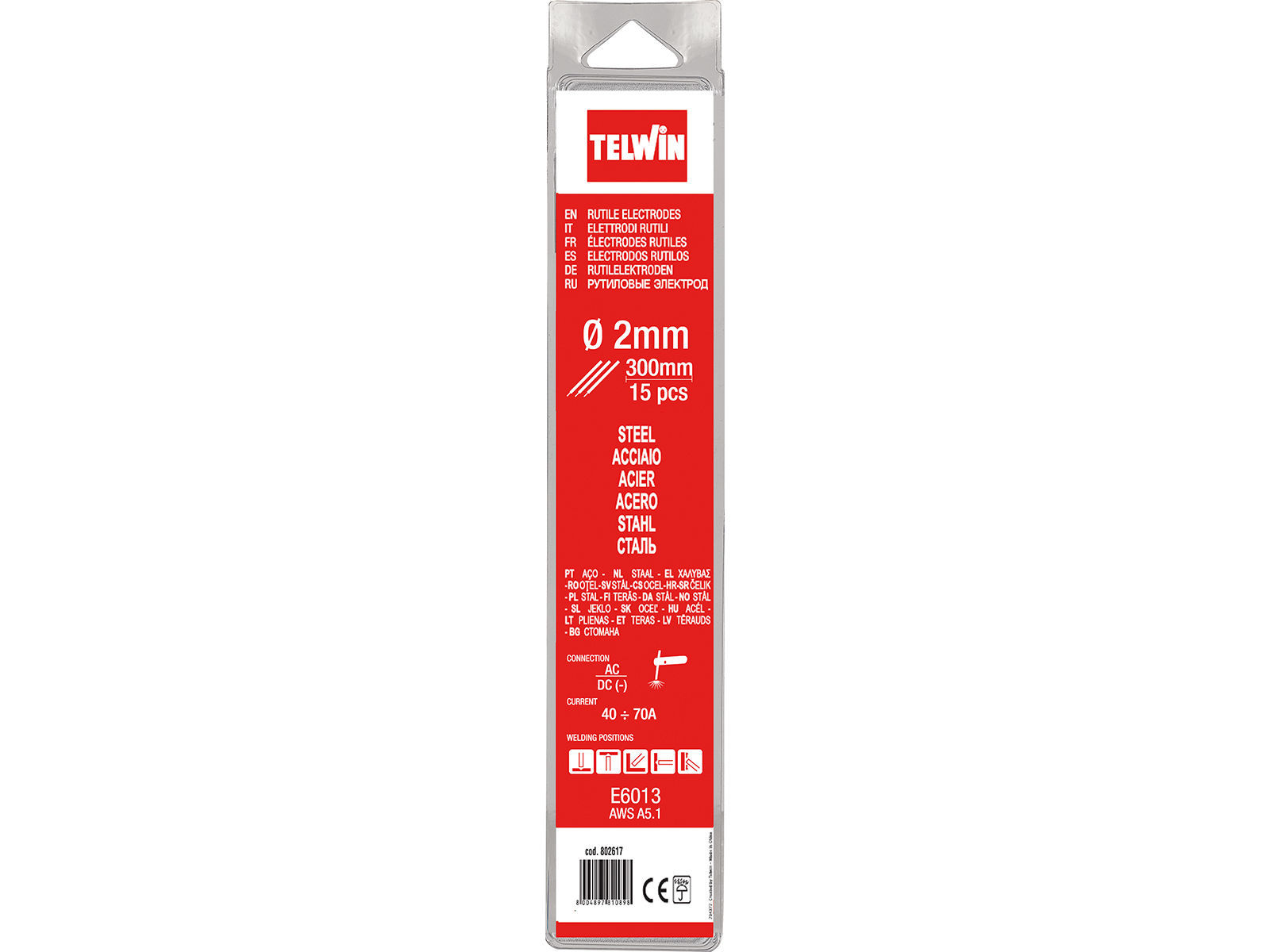 Stål sveiseelektroder i praktiske blisterpakninger. Det spesielle belegget på elektrodene gir den en utmerket overflate etter størkning og garanterer utmerket overflatebehandling av sveiseoperasjoner. De kan brukes i alle posisjoner og garanterer gode nivåer av stabilitet for buen; sveising kan utføres ved hjelp av direkte polaritet kontinuerlig strøm (negativ med elektrodeholderklemme) og i vekselstrøm med utmerkede mekaniske egenskaper i smeltesonen. De brukes til sveising av gjennomsnittlige tykkelser.