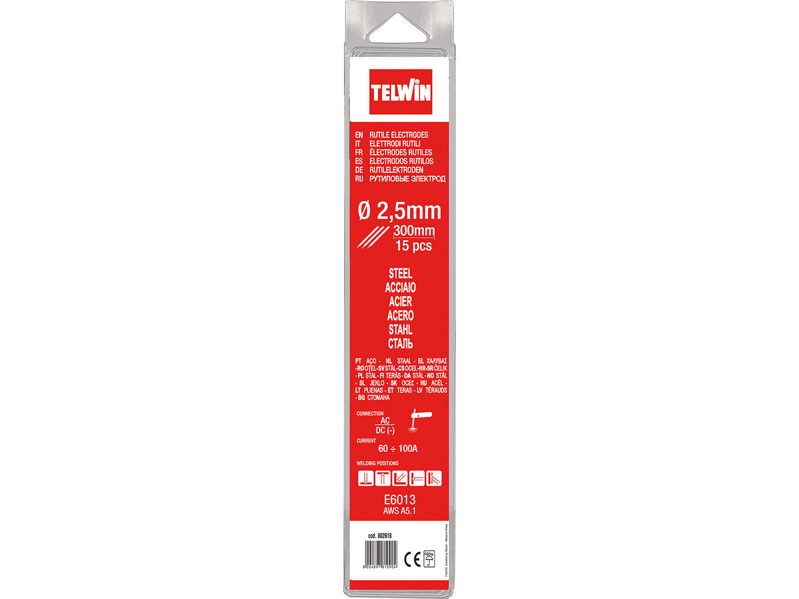 Stål sveiseelektroder i praktiske blisterpakninger. Det spesielle belegget på elektrodene gir den en utmerket overflate etter størkning og garanterer utmerket overflatebehandling av sveiseoperasjoner. De kan brukes i alle posisjoner og garanterer gode nivåer av stabilitet for buen; sveising kan utføres ved hjelp av direkte polaritet kontinuerlig strøm (negativ med elektrodeholderklemme) og i vekselstrøm med utmerkede mekaniske egenskaper i smeltesonen. De brukes til sveising av gjennomsnittlige tykkelser.