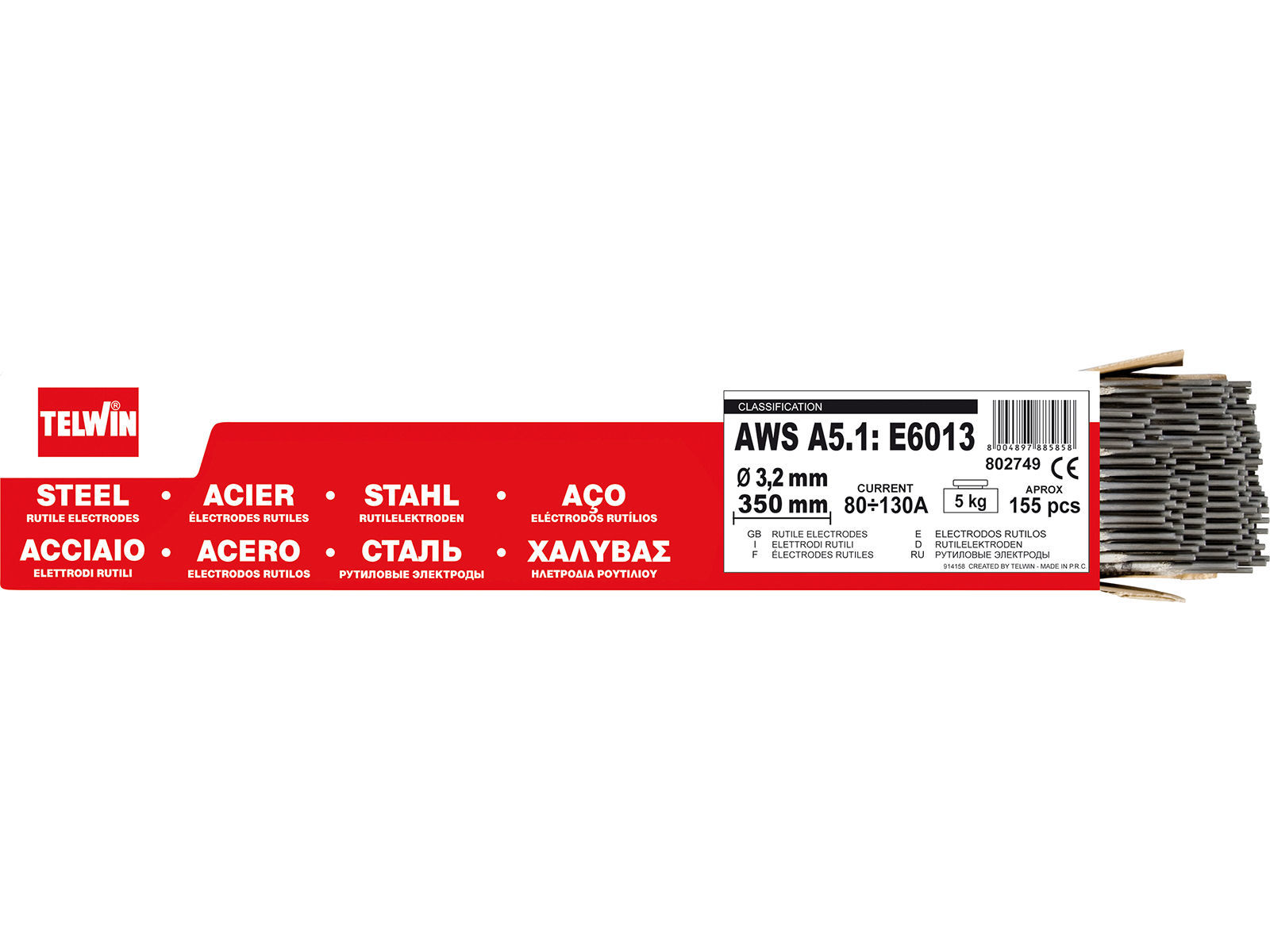 Stål sveiseelektroder i praktisk pappeske. Det spesielle belegget på elektrodene gir den en utmerket overflate etter størkning og garanterer utmerket overflatebehandling av sveiseoperasjoner. De kan brukes i alle posisjoner og garanterer gode nivåer av stabilitet for buen; sveising kan utføres ved hjelp av direkte polaritet kontinuerlig strøm (negativ med elektrodeholderklemme) og i vekselstrøm med utmerkede mekaniske egenskaper i smeltesonen. De brukes til sveising av gjennomsnittlige tykkelser.