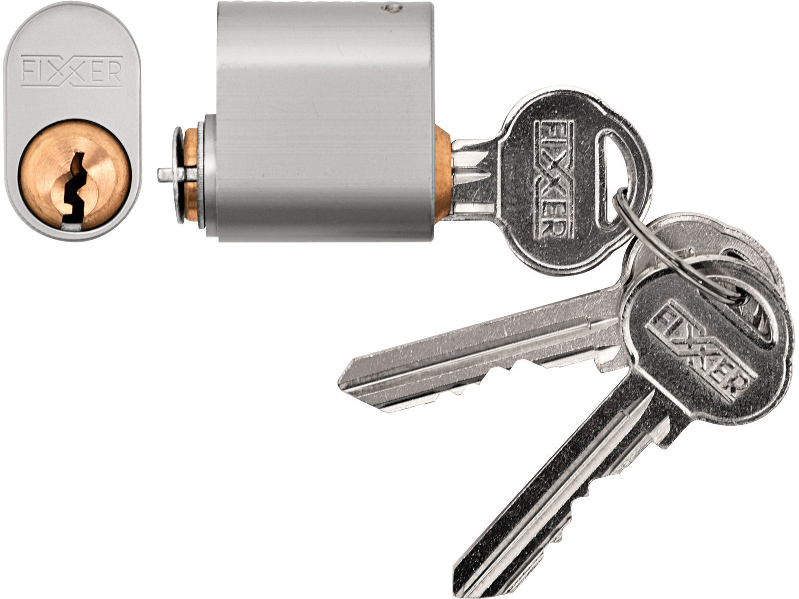 Sylinder for ut og innvendige dører med 7 stifter. Krom matt utførelse. Leveres med 3 nøkler. Passer i kombinasjon med låskassene 70111, 72016, 70565, 78765, 74105 og 72002.