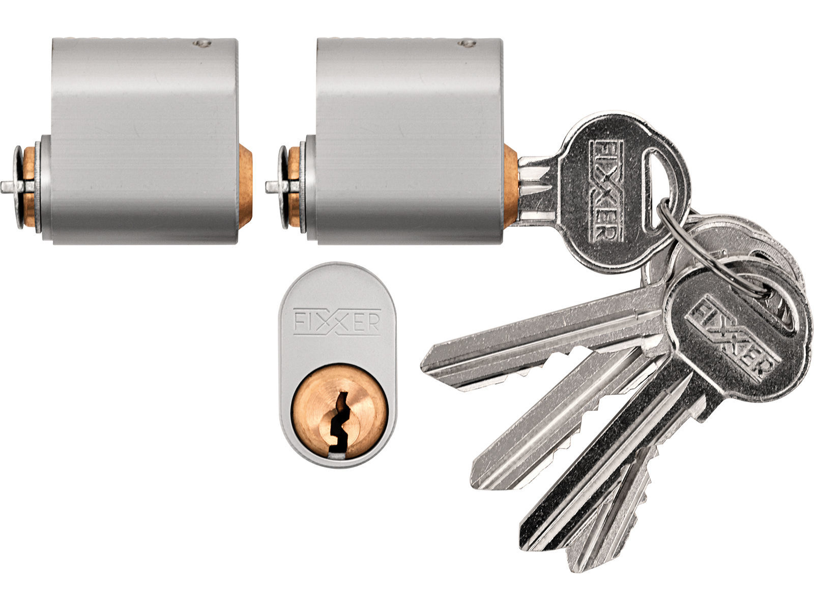 Sylinder for ut og innvendige dører med 7 stifter. Krom matt utførelse. Består av to sylindre med samme nøkkel (5 stk). Passer i kombinasjon med låskassene 70111, 72016, 70565, 78765, 74105 og 72002.