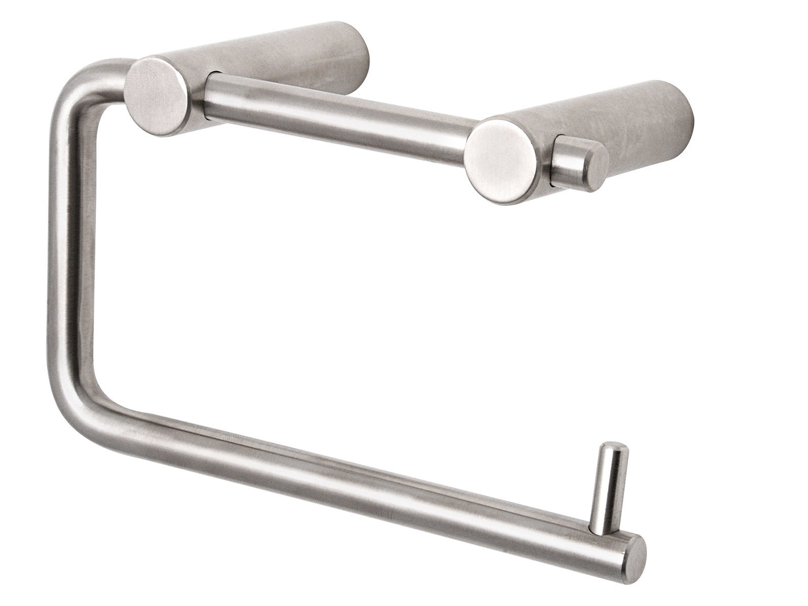 Stilren toalettrullholder i rustfritt stål, med skjult skruing. Symmetrisk vendbar.