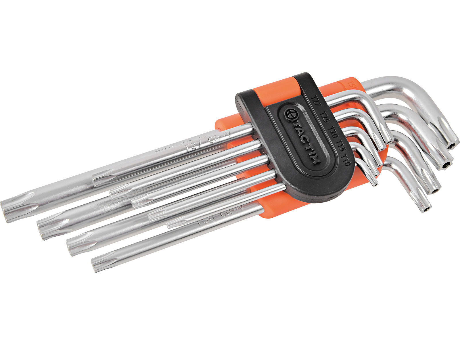 Utført i krom vanadium. Senterhull i ene enden. Settet inneholder nøkler fra Torx 10 til 50.
