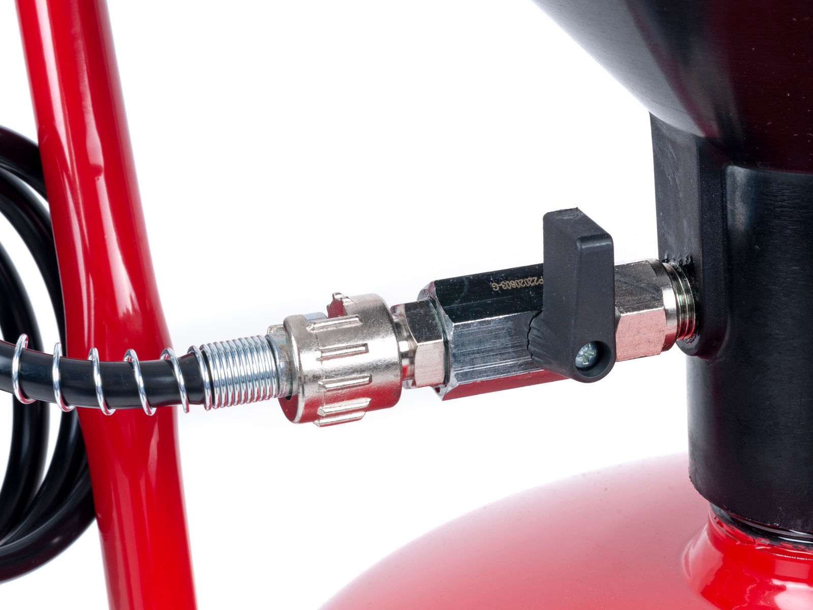 Avfettingssprøyte med 24 liters lakkert ståltank. Leveres med en sprutbeskyttende trakt, manometer, nivårør, 10 meter spiralslange, rustfri stållanse med spraydyse og dysebeskyttelse. Avfettingssprøyter er egnet for ikke-giftig sprøyting som rengjøringsvæsker, smøreoljer eller lignende med lav densitet, til vask av kjøretøy, grafitering, smøring, fordeling av formolje osv. Fyll på med valgt væske opp til 3/4 av tankens volum og sett luften under et trykk på 6 - 8 bar. Nå fungerer avfettingssprøytene selvstendig uten at den må koples til trykkluftsystemet.