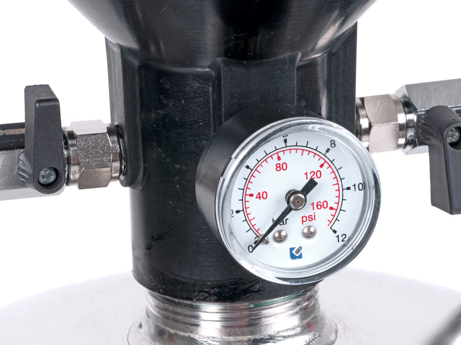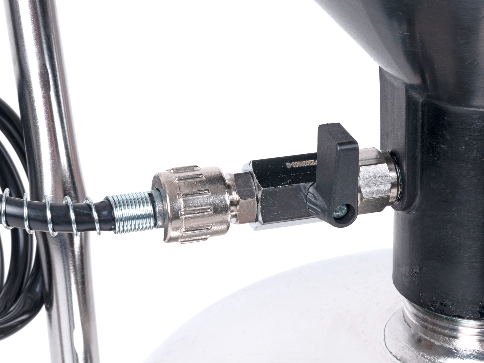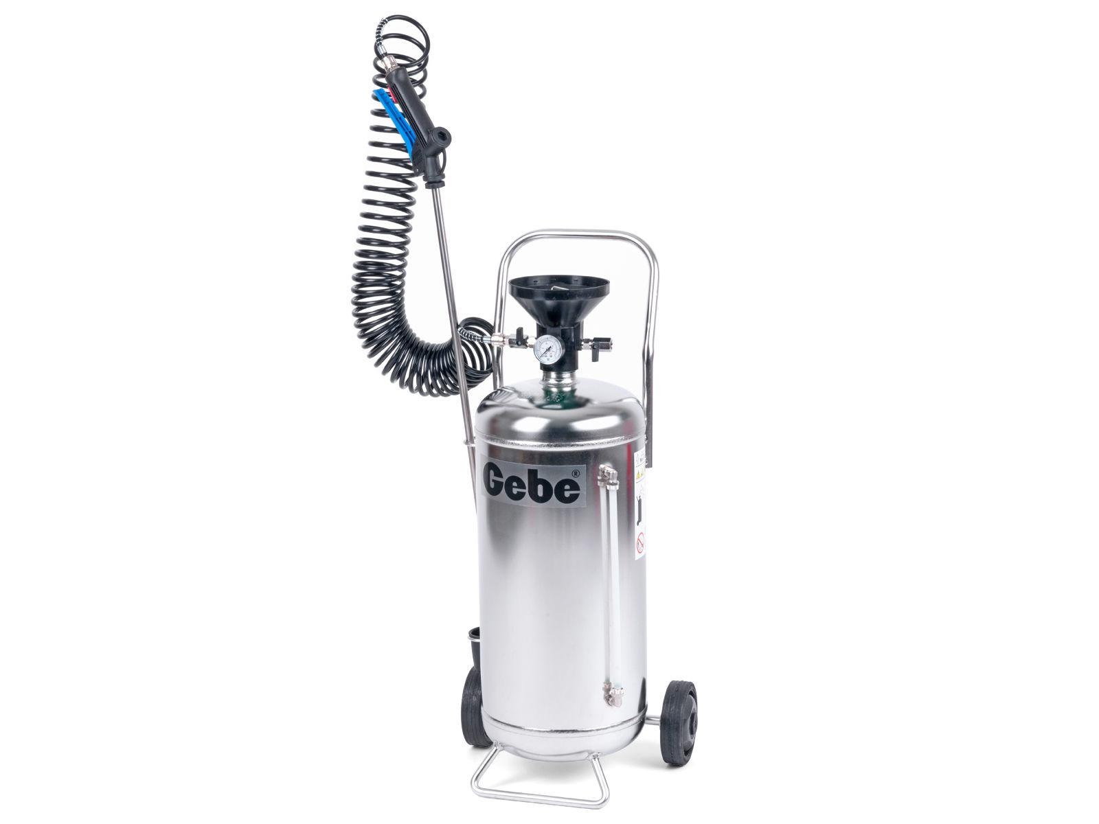 Avfettingssprøyte med 24 liters tank i rustfritt stål. Leveres med en sprutbeskyttende trakt, manometer, nivårør, 10 meter spiralslange, rustfri stållanse med spraydyse og dysebeskyttelse. Avfettingssprøyter er egnet for ikke-giftig sprøyting som rengjøringsvæsker, smøreoljer eller lignende med lav densitet, til vask av kjøretøy, grafitering, smøring, fordeling av formolje osv. Fyll på med valgt væske opp til 3/4 av tankens volum og sett luften under et trykk på 6 - 8 bar. Nå fungerer avfettingssprøytene selvstendig uten at den må koples til trykkluftsystemet.