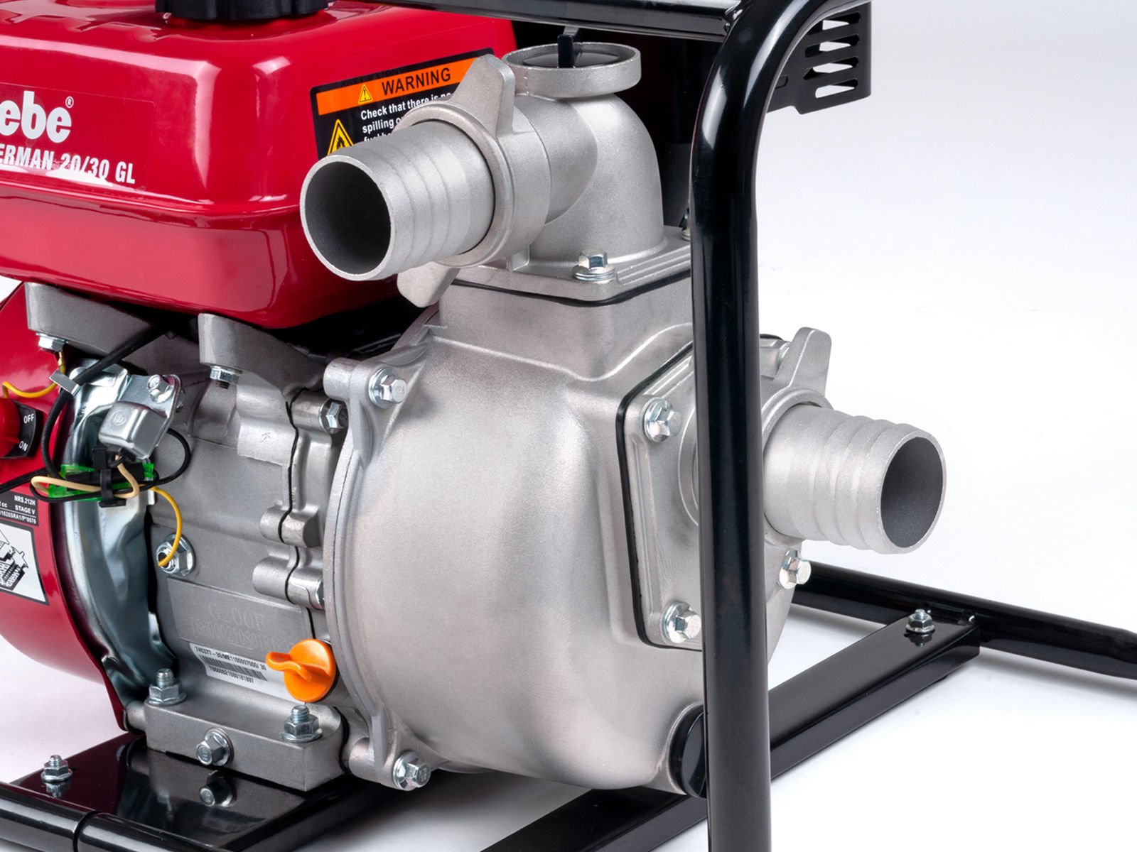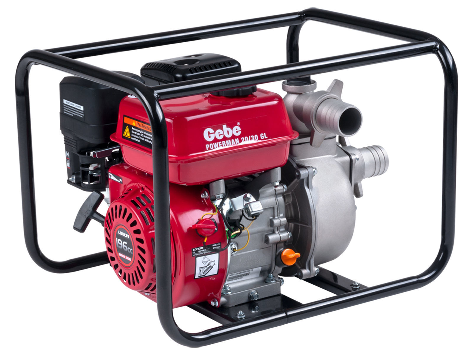 Motordrevet vannpumpe for fylling og lensing av rent vann, ideell for hus, hage og landbruk.  Denne modellen er perfekt for vedlikehold av svømmebasseng og badestamper.  Kraftig modell med 5,5 HK, 4-takts, lettstartet bensinmotor, leveres i kraftig ramme, lav vekt på 26 kg, maks. kapasitet 500 l./min.  Leveres med to 50 mm (2") slangestusser, bunnsil og 3 slangeklemmer.  Denne pumpen er beregnet for rent vann.
