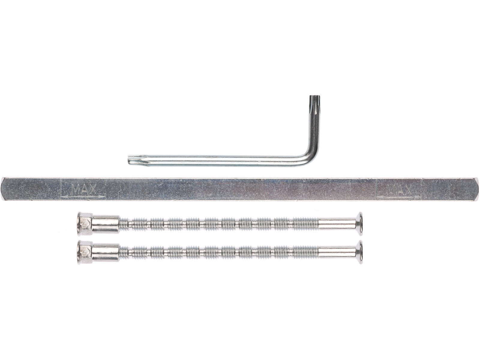 Vridertilbehør for inner -og ytterdørsvridere i rustfritt stål. Krom matt utførelse. Passer til dørtykkelse 35-80 mm. Komplett sett inneholder: 4 stk settskruer, 4 stk skruer 5x40 mm, 4 stk 5x90 mm, 4 stk muttere 5x15 mm, 2 stk pinner 8x98 mm 8x140 mm og Torx 20 L-nøkkel.