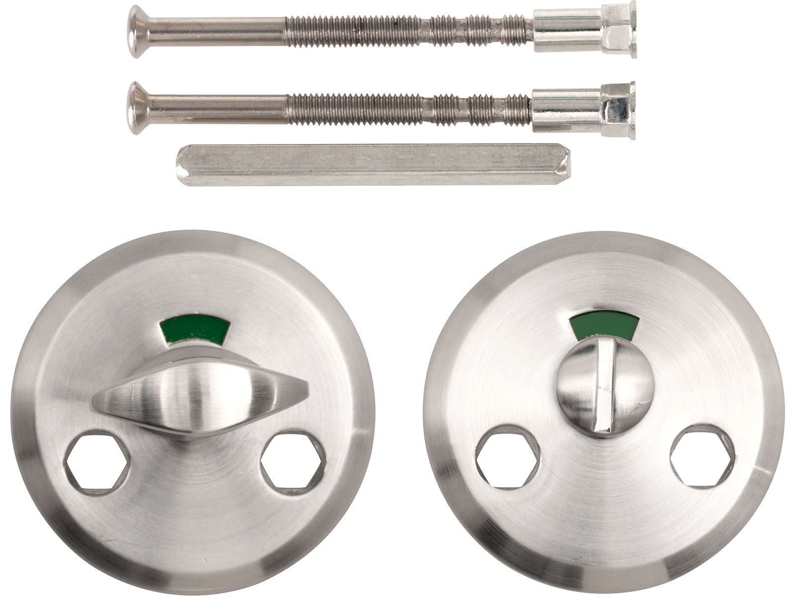 WC-garnityr av zink/alloy for innerdører. Krom matt utførelse. Passer til dørtykkelse 35-60 mm. Leveres komplett med skilt type R0K3, samt skruer og tilbehør. En del av BASIC-serien.