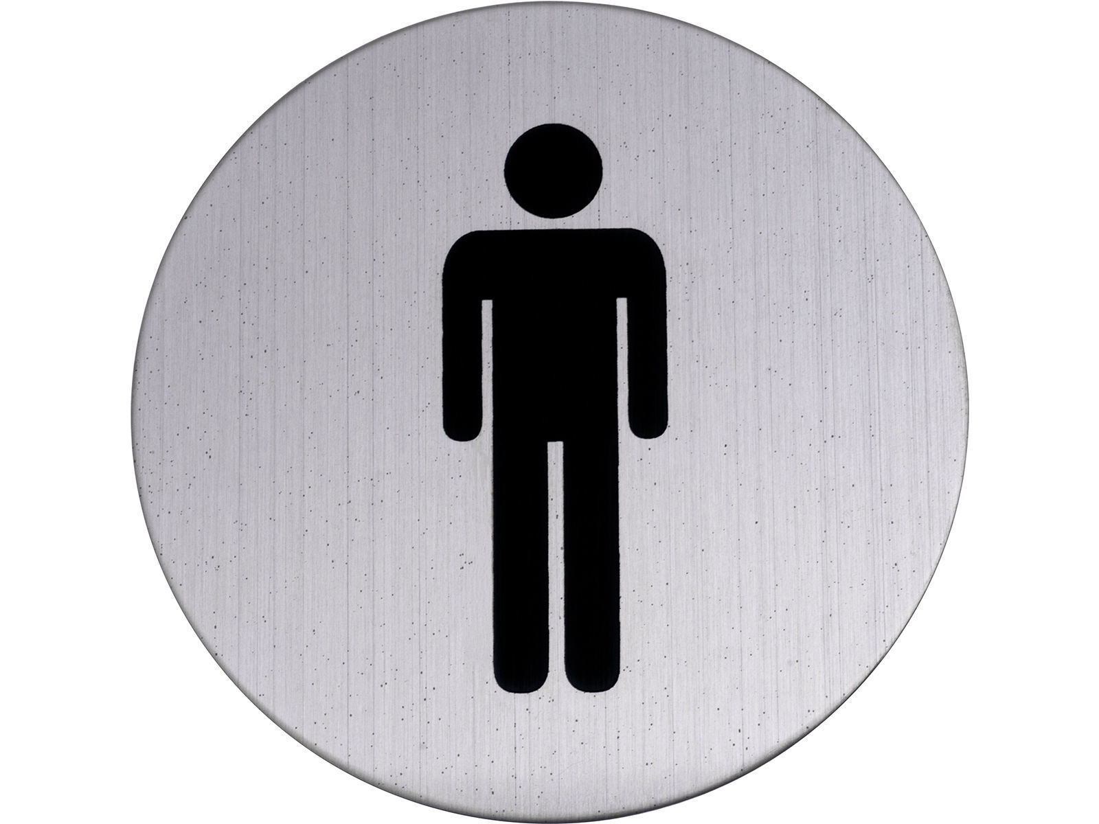 WC-skilt Ø75 mm i rustfritt stål (A2/304). Selvklebenede, fester godt til enhver plan og ren overflate. Tykkelse 1,5 mm.